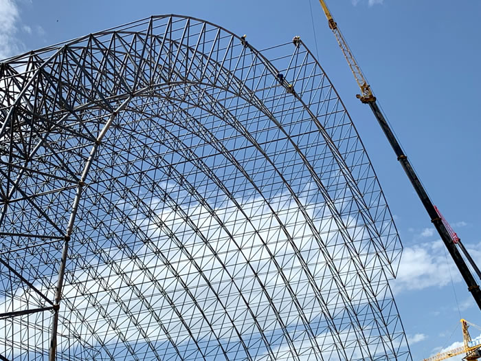 (2)网架加工前应对现场尺寸进行复测,确认无误后方可进行加工、安装;网架制作、运输、安装应遵守《空间网格结构技术规程》JGJ7-2010、《钢网架梧州螺栓球节点》JG/T 10-2009、《钢网架梧州螺栓球节点用高强度螺栓》 GB/T 16939-2016、《梧州钢结构梧州工程梧州施工规范》 GB50755-2012、《梧州钢结构梧州工程梧州施工质量验收标准》 GB50205-2020。